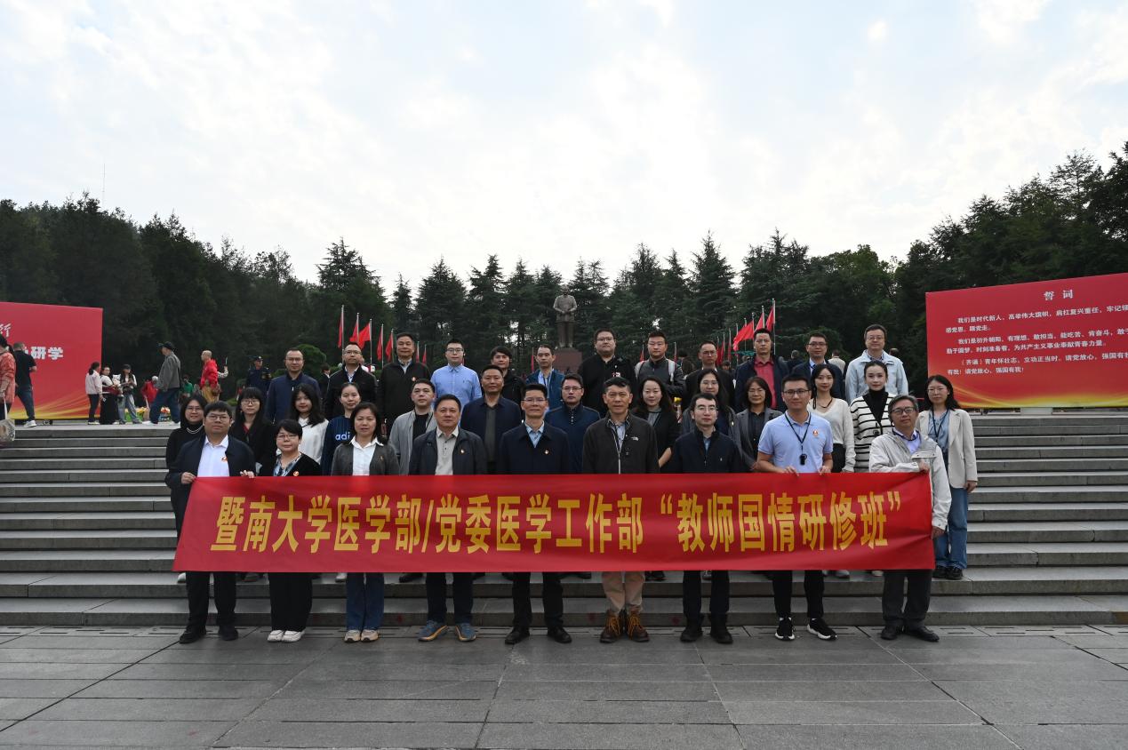 2025年10月28日至31日,经学校党委批准,由医学部/党委医学工作部组织的第三期暨南大学医学教师国情研修班在湖南韶山、长沙顺利举行。来自医学各学院、各附属医院以及学校机关部处的35名“双带头人”教师党支部书记、思政教师和党政管理干部学员齐聚一堂,共同参与此次研修学习。