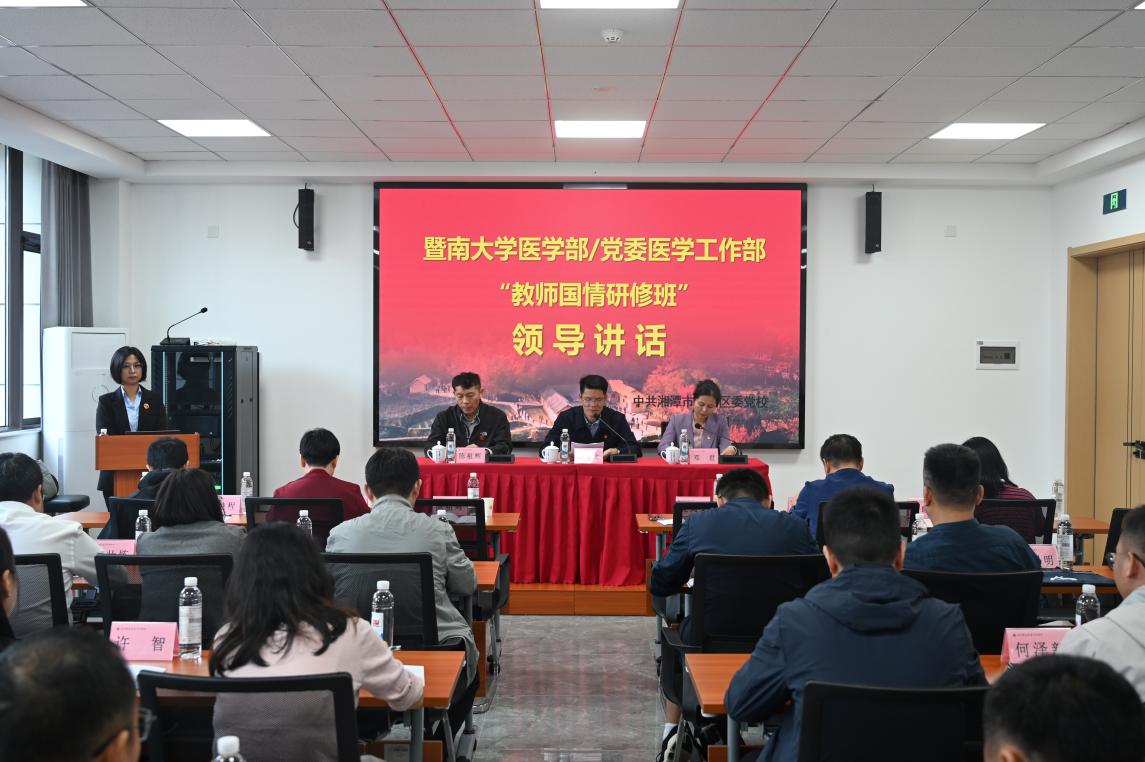 10月28日下午,研修班开班仪式在湖南韶山市委党校举行。暨南大学党委医学工作部部长麦尚文在致辞中指出,本次研修班不仅是思想淬炼的“加油站”,更是提升能力的“实践课堂”。他希望全体学员深刻领会“为什么来”、深入思考“来做什么”、认真谋划“回去怎么干”,在行走中感受文化、在思索中获得启迪、在静修中踏实沉淀,真正将红色精神内化于心、外化于行,切实转化为推动医学教育事业创新发展的强大动力。
