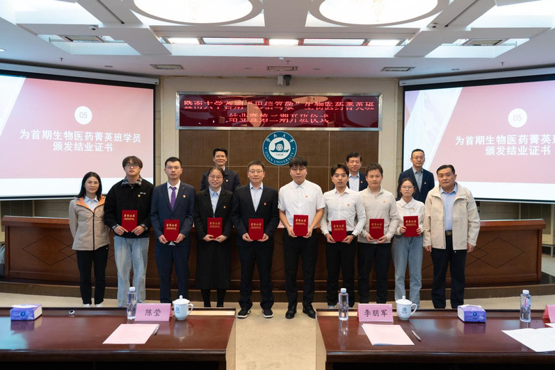 随后,基础医学与公共卫生学院党委李秀玉书记、生命科学技术学院党委马义书记、护理学院党委龚华芳书记和中医学院党委金学刚书记共同为首期学员颁发了结业证书,标志着首期培养任务圆满完成。
