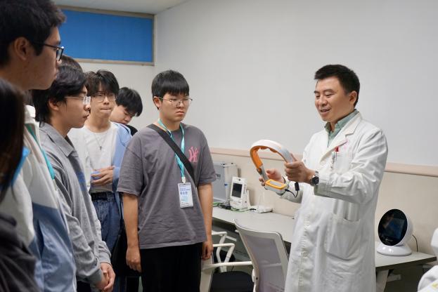 12月7日上午,第二批体验营的20名澳门高中学生来到了暨南大学附属第一医院的脑机接口病房。附属第一医院功能神经外科主任、脑机接口病房主任陈志勇教授详尽阐述了脑机接口技术的精髓及其核心临床应用领域,并分析了该领域未来发展的无限潜力。随后,两位同学穿戴脑机接口设备进行现场演示,更直观地感受了脑机接口技术的神奇。