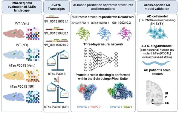 该研究首次揭示了NAD⁺通过调控关键蛋白EVA1C的可变剪接,逆转阿尔茨海默病相关神经功能障碍的新机制,为基于“剪接开关”的阿尔茨海默病干预策略提供了理论基础和潜在靶点。